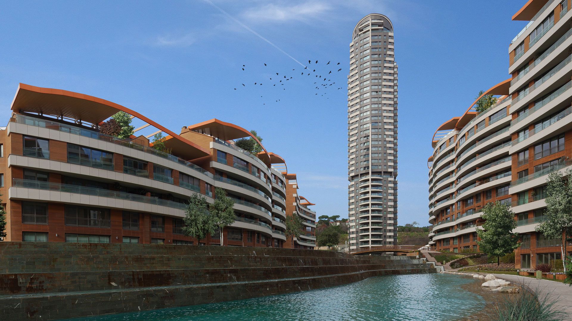Göl etabı, bulunduğu arazinin merkezindeki kurumuş akarsu yatağının tekrar canlandırılarak eski flora ve fauna dokusunun yeşertildiği peyzajla bütünleşen suyun etrafında şekillenmiştir. Oluşan yeni doğal dokunun hem manzara hem de rekreasyon olarak yaşama katılması tasarımı şekillendiren bir unsurdur. Konutlardaki kat bahçeleri de 2.5 m küçük ağaçlar ve çeşitli bitkiler hatta organik sebzeler yetiştirilebilecek nitelikte 40 cm toprakla doldurulmuştur. Binaların sert esen kuzey-doğu rüzgârından etkilenmeyecek şekilde konumlandırılması kulelerde bile kayar doğramaların açılabilir olmasına olanak vermiştir. İstanbul kent hayatı içinde açık alan kullanımlarının çok tercih edilmesini destekleyen bu mimari yaklaşımı Akasya projesindeki tüm konutlarda görmek mümkündür.