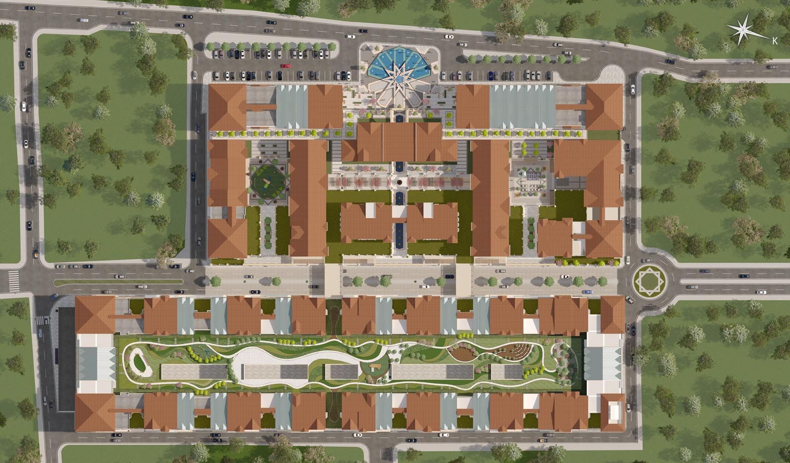 Proje master planlamasında amaç, kentlilerin günlük ihtiyaçlarını karşılayabilecekleri açık semt çarşılarının ve alış-veriş merkezinin; sosyalleşebilecekleri yaya yolları ve meydanlarının; iş hayatının dinamizmini yakalayabilecekleri konforlu ofis alanlarının; farklı ünite planlamasıyla çeşitlenmiş çok alternatifli öğrenci ve çalışana yönelik barınma zonlarının bir biri içine geçebilen kurgunun elde edilmesidir. Bu bağlamda projede ticaret fonksiyonuna erişim kent zemini sürekliliğinde devam ettirilmiş ve alana gerek yaya gerek araçla çok yönlü erişim sağlanmıştır. Araç trafiğine açık, kuzey-güney doğrultusunda açılan ve tasarımın ana kurgusunu oluşturan “54. Cadde”, araziyi kent zemin kotunda “kapalı alışveriş merkezi” ve “sokak çarşı” konseptlerinin yer aldığı iki alana bölmektedir. Üst kotlarda yaya köprüleriyle birleşen ve alan kullanımında bir bütün olarak deneyimlenebilen bu iki zonda, bulvara bakan batı yönünde zemin üstü 1 kat ticaret ve üzerinde 3 kat ofis blokları; kent merkezinden gelen aksa açılan güney yönünde kapalı AVM üzerinde zemin üstü 1 kat ticaret ve üzerinde 2 kat apart ünite / stüdyo apartlar yer alır. Projede düşey yerleşim kurgusu kamusal ve özel alanın birbirinden ayrıştırılması yönündedir. Böylelikle sosyalleşme olanakları arttırılmış, hem kent yaşam dinamiklerini besleyen hem de mahremiyeti koruyan mimari anlayışla kullanıcılara alternatifli zaman ve mekan deneyimi sağlanabilmiştir. Bulvar cephesi (batı yönü) yaya girişi, modernize edilmiş kolon ve kemer strüktürleriyle tanımlanmış kent meydanından sağlanmış; alanda gezinme güzergahı, zemin kotunda planlanmış çarşı, semt pazarı ve yeme-içme alanları etrafında belirlenmiştir. Yaya güzergahının durak noktaları, 54. Cadde aksına birer “niş” gibi eklemlenen ve kullanıcıları için alış-veriş ve sosyalleşme imkanı sağlayan, kentsel peyzajla zenginleştirilmiş meydanlardır. Mevcut arazide yer alan stadyum, projenin yeşil alan / rekreasyon tasarımı için bir referans olmuş, projeyle birlikte taşınacak olan stadyumun Serdivan’a sunduğu yeşil doku ve oluşturduğu kentsel hafıza, zemin üstünde düzenlenen çatı-bahçeleri ile tekrar kente kazandırılmış, kullanıcıları için özellikli peyzaj tasarımıyla alternatif bir park alanına dönüştürülmüştür.