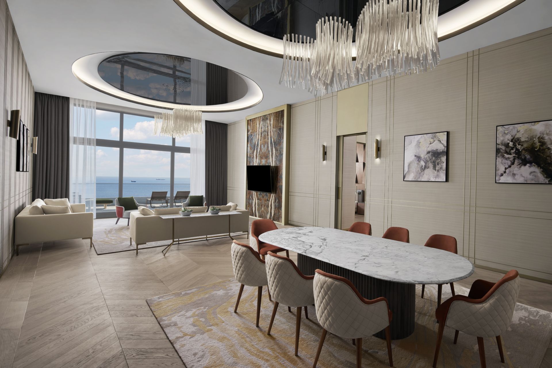 Seapearl projesinin kalbinde hizmet verecek olan otel ve rezidans projesi, konumu ve tüm projede gözetilen yüksek nitelikli rezidans hizmeti anlayışıyla İstanbul ile buluşurken, kentin dinamizmini ivmelendirecek bir anlayışla, tek kütle etkisinin korunduğu iki ayrı bina olarak tasarlanmıştır. Rezidans ve Otel bloklarının yan yana gelişleri İstanbul'un birbirine geçişli boğaz imgesinin ve kentlinin suyla buluşma deneyimlerinin yaşatıldığı bir konsepte sahiptir ve binalar, sükunetli ve güçlü sadelikle kente katılır. Selçuklu motifinin modernize edilmesiyle elde edilen görkemli dantel strüktürün bir araya getirdiği binada giriş aksında ilk adımdan itibaren suyla buluşma sağlanır ve bu etki lobide devam ettirilerek denizle görsel bir bütünlük sağlanır. Görkemli ama sade, lüks ama abartısız bir ele alışla projelendirilen otel ve rezidans üniteleri / odaları %100 oranında deniz manzarasına sahiptir. Geniş ve lüks standart odaların sahip olduğu balkon ve teraslar iç ve dış yaşamın bir arada özenle eritildiği yüksek kalitede mekansal deneyimlere olanak vermektedir.