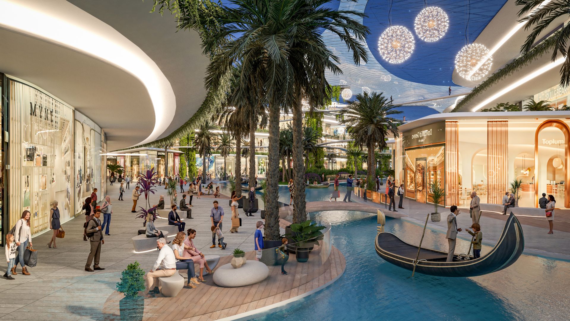 Suyun değerinin son derece yüksek olduğu Erbil’de, su öğesi de tasarımın merkezine yerleştirilmiştir. Alışveriş birimleri arasına uzanan kanallar, ziyaretçilerin gondollarla mekânı farklı bir perspektiften keşfetmesine imkân tanır. Bu su yolları, doğrudan yeşil adalara bağlanarak mimarlık ile doğa arasında kesintisiz bir hareket deneyimi sunmaktadır.