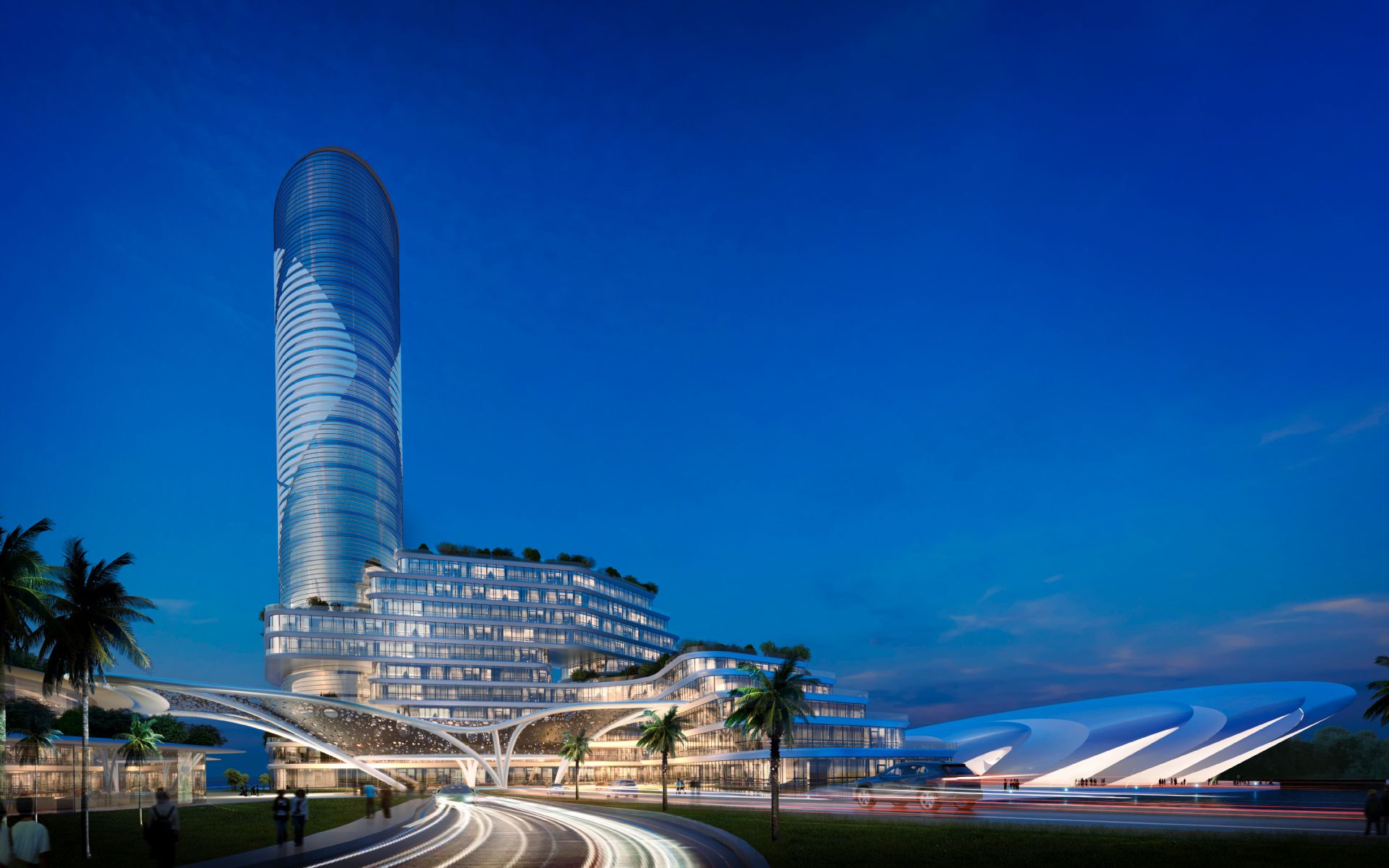 Açık alanları örten eko-dostu yeşil çatı, palmiye ağaçlarının zarif gücünden esinlenilmiş anıtsal strüktür kolonlarıyla taşınmaktadır. Zeminden yükselerek yeşil çatıya ulaşan bu düşey bahçeler, doğa ile yapıyı etkileyici bir bütünlük içinde buluşturmaktadır.