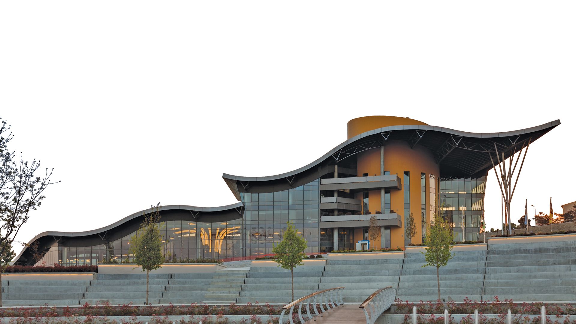 Altın Oran Konut Projesi ile Ankara'da kent ölçeğindeki ilk büyük yatırımını gerçekleştirmek üzere yola çıkan Sinpaş'ın, projenin tanıtımı ve Ankara Yönetim Ofisi olarak kullanılacak bina, firmanın çağdaş, yenilikçi ve güvenilir imajını destekleyen bir anlayışla tasarlanmıştır.Projede, yatırımcının bir çatı altında toplanan, büyük ekipleri ile hızla büyüyen bir firma olma özelliği, esnek, armonik ve yükselen bir çatı ile ifade bulurken, çağdaş ve çevreci mimari çözümler üretmede gösterdiği özen, bina formu ve malzeme seçimlerinde vurgulanmıştır. Binaya, ilk kentlerin su kenarında oluştuğuna atıfta bulunan bir gölet üzerinden ve çatıdan 25 m ileriye uzanan dev bir saçak altından girilmektedir. Öne uzanan dev saçak yenilikçiliği, idealleri, ağaç formundaki taşıyıcı bu ideallerin sağlam ve köklü bir birikimin sonucu olarak ele alındığını sembolize eder. Zemin kat ile açığa çıkan 1. bodrum katlarda satış ofisi, üst katlarda idari ofisler yer almaktadır. İdari katlar ve satış ofisi tek bir çatı altında çözümlenmiş, tüm katlar arasında zengin bir görsel ilişki kurulmuştur. Çatı örtüsü tek ve akan bir form olmakla birlikte iki kademelidir. Çatı yükseltilerek Satış galerisi ile idari bölüm formda da vurgulanmış, ofislere kat bahçesi ve daha fazla ışık alma imkanı sağlanmıştır.