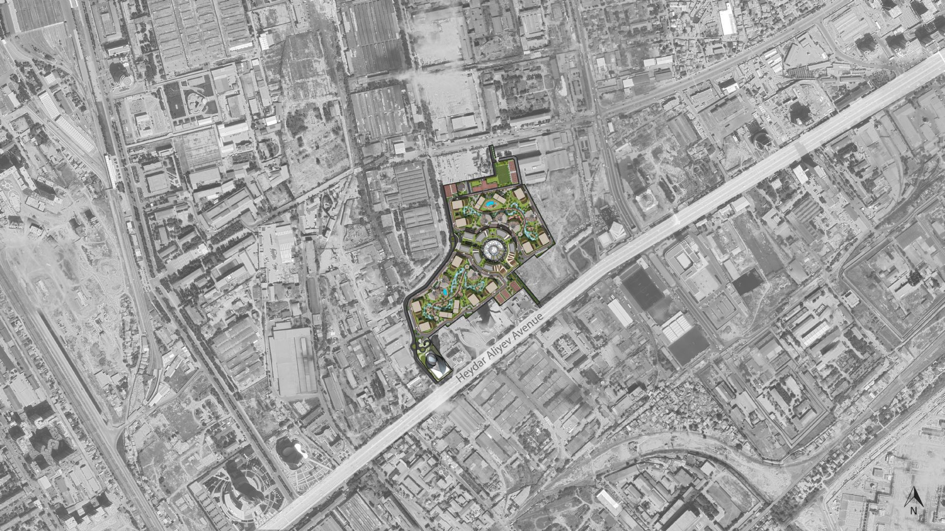 Proje, Heydar Aliyev Caddesi üzerinde 151.163 m² büyüklüğündeki bir arazi üzerinde konumlanmaktadır. Daha önce sanayi bölgesi olarak kullanılan alan günümüzde Heydar Aliyev Bulvarı ile Volidarski Caddesi aksı arasında yer almasıyla kentin gelişim koridorunda stratejik bir pozisyon taşımaktadır.